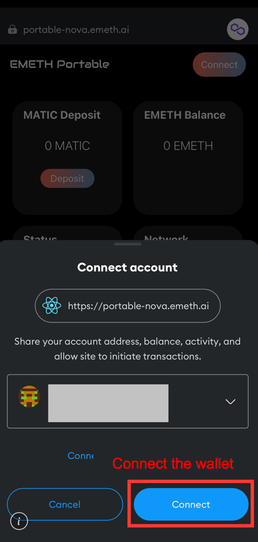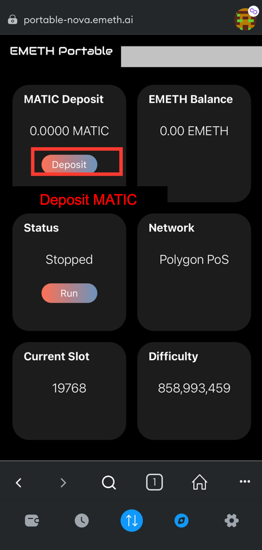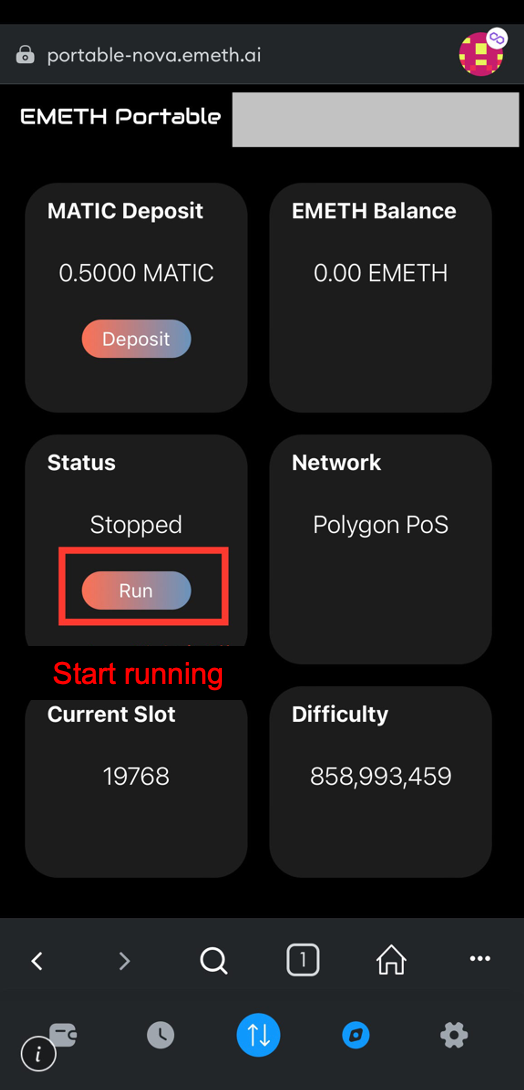 (2)Search for https://portable-nova.emeth.ai/ to open the EMETH Node page.